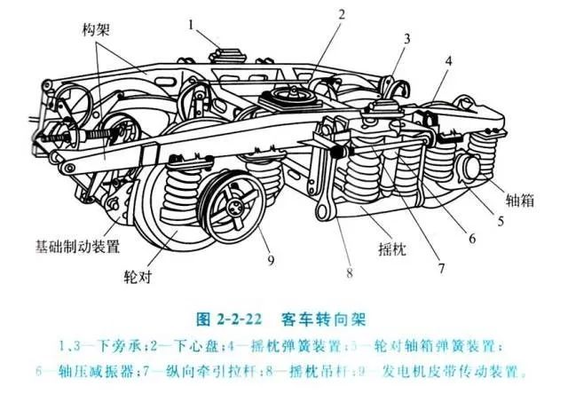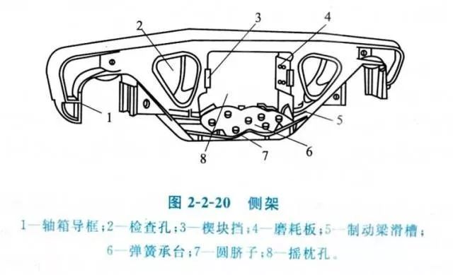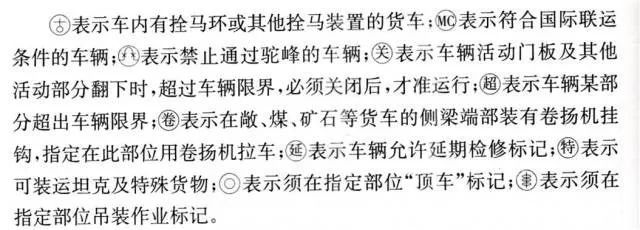 一、客货车车型及车号的规定 1.客车的车型及车号 ⑴车型由基本型号和辅助型号组成 ①基本型号 ![]() ②辅助型号:辅助型号表示同一种类的客车,在构造及设备等方面有不同特点,用阿拉伯数字或数字与字母为代号,标在基本型号的右下角。如YZ22与YZ25G中的22与25G,这两种车虽然都是硬座车,但YZ22型车体长23.6m,车内无空调设备,而YZ25G型车体长25.5m,车内有空调设备。 ⑵车号 为客车的编排顺序号码,用以区分车种、车型相同的各辆客车。如YZ25G42002 ![]() 2.货车的车型及车号 ⑴车型 货车的车型编码由三部分组成,用大写汉语拼音字母和数字混合表示,其最大位数不超过五位。 ![]() ![]() ⑵车号: 采用7位数字代码,按车种车型进行编排,可编货车的容量为9999999辆。 ![]() 二、车辆标记 1.共同标记 ⑴路徽:铁路总公司所属的车辆上 ⑵车型车号:车辆型号及号码 ⑶制造厂名及日期标牌:固定于车辆两侧梁的中部,内铸有 制造厂名及制造年月 ⑷客车车种标记:涂打车种汉字称号 ⑸客车定员标记:按客车设备(座位或卧铺数)标明可容纳人数 ⑹定期修理的日期及处所:车辆定期检修的时间和检修单位简称,右侧为本次检修时间和单位,左侧为下次到期检修时间。 段修 厂修 ![]() ![]() ⑺自重:车辆本身的重量 ⑻载重:车辆允许的最大载重量 ⑼容积:可供装载货物的容量 ⑽换长:车辆两端钩舌内侧距离的长度与11的比值 ⑾车号自动识别标签:考虑到未来车辆信息化管理需要 ⑿配属标记:固定配属的车辆 ⒀车辆定位标记:车辆的方向定位称呼是以制动缸活塞杆推出的方向为第一位,相反的方向为第二位 ![]() ⒁特殊标记 ![]() 白色横线——在车体两侧墙中央涂以宽200mm的白色横线,表示救援列车的车辆。 环形色带——装运危险货物的罐车,在罐体两侧纵向中部应涂刷一条宽300mm表示货物主要特性的水平环形色带,红色表示易燃性,绿色表示氧化性,黄色表示毒性,黑色表示腐蚀性。 三、车辆的基本构造 1.车体 作用:旅客乘坐或装载货物的部分 组成:车底架、侧墙、端墙、地板、车顶 ![]() 2.走行部 作用:引导车辆沿轨道运行,并把车辆的重量和货物载重传给钢轨 组成:轮对、轴箱油润装置、侧架、摇枕、弹簧减振装置 ![]() ⑴轮对 作用:承受车辆的全部重量,引导车辆在钢轨上运行 ![]() ⑵轴箱油润装置 作用:保护轴颈,使轴承与轴颈间得到润滑,减少摩擦,防止发生热轴 ![]() ⑶侧架 作用:承受、传递各种作用力,把转向架各零部件组成一个整体 ![]() ⑷摇枕 作用:安装下心盘、下旁承 ![]() ⑸弹簧减振装置 作用:缓和或消减车辆运行受到的冲击和振动 ![]() 3.车钩缓冲装置 作用:连挂机车车辆,传递牵引力和制动力,缓和列车运行或调车作业时所产生的冲击力 组成:车钩、缓冲器 ![]() ⑴车钩 ①锁闭位置:车钩的钩舌被钩锁铁挡住不能向外转开的位置,称之为锁闭位臀。两个车辆连挂在一起时车钩就处在这种位置。 ②开锁位置:即钩锁铁被提起,钩舌只要受到拉力就可以向外转开的位置。 ③全开位置:即钩舌已经完全向外转开的位置。 ![]() ⑵缓冲器 缓和并减小车辆连挂、起动、制动时的冲击力 ![]() 4.制动装置 作用:用外力迫使运行中的机车车辆减速或停车的一种设备 组成:空气制动机、基础制动装置、手制动机 ⑴空气制动机 作用:利用压缩空气产生并控制制动力 ![]() ⑵手制动机 作用:用人力来使单节车辆或车组减速或停车 组成: ![]() ⑶基础制动装置 利用杠杆原理,将空气制动机或人力制动机产生的力量扩大适当倍数,再均衡地向各个闸瓦传力的装置。 o 5.车内设备 为运输对象服务而设于车体内的固定附属装置。 |