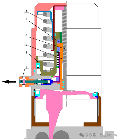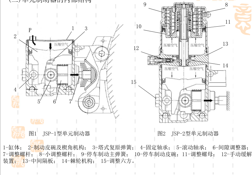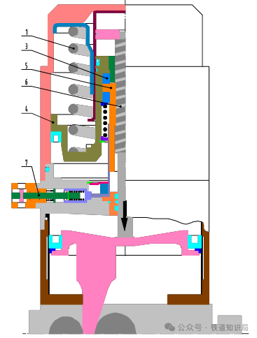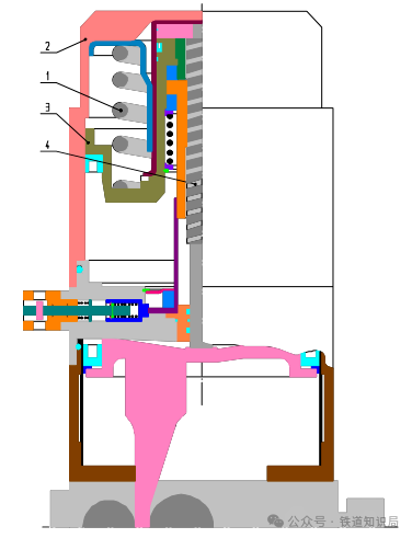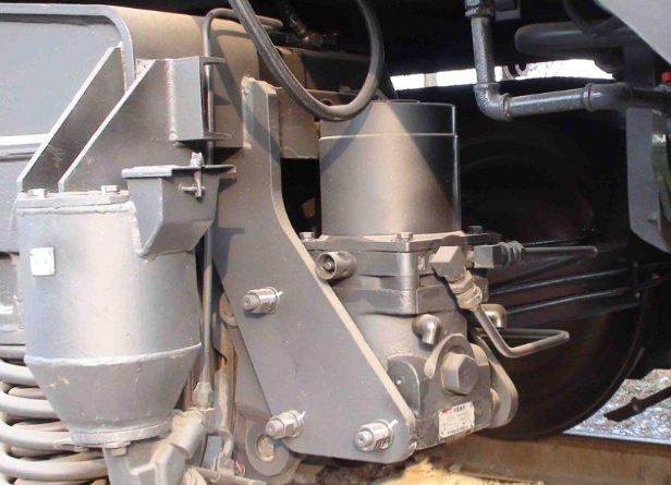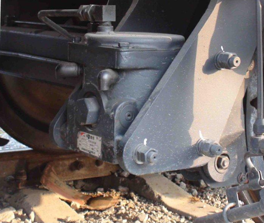 ![]() 制动系统作为司机控制机车速度、停车的装置,一直以来都是保障列车安全运行的关键装备。制动系统也从蒸汽机车时代的简易空气制动装置,逐渐发展成为智能化、模块化、标准化的微机控制电空制动装置。今天我们来讲讲铁路机车的停放制动。 停放制动的作用 为了讲解停放制动的作用,先来看一个事故案例。1996年9月2日,北京铁路局大同铁路分局湖东电力机务段的韶山4型0166号机车牵引大同至湖东间2258次货物列车,列车运行至大秦铁路韩家岭站至湖东站间K8+668下坡道处时,司机操纵牵引手柄退级,列车惰性运行。 ![]() 事故现场照片 ![]() 被撞下御河特大桥的SS4-0179B号车 由于机车乘务员超劳工作、3名司机打盹,列车失去控制在K15+408处千分之4的上坡道自然停车,2分钟后列车向后溜逸1665米,在大秦铁路御河大桥上与后续的新湖3856次货物列车相撞。新湖3856次的韶山4型0179号B节机车(操纵端)掉下大桥,前转向架被撞入下行线,导致两名司机死亡,造成韶山4型0179号机车B节报废,货车报废2辆、大破4辆、中破1辆、小破7辆,中断大秦铁路下行线24小时20分、上行线25小时13分,构成行车重大事故。韶山4型0166号机车没有损坏。事故后,机车A节保存于湖东电力机务段内,作为事故警示车使用。 停放制动是机车制动系统主要功能之一,由于制动器内的压缩空气不可避免地存在泄漏,机车因长时间停放,造成空气制动力缓慢降低。当机车在坡道线路上或库内长期停放时,在风力或坡道下滑力等外力作用下,容易导致机车溜车,进而发生机车破损或伤及人员的安全事故。因此,机车上必须安装停放制动装置。 停放制动技术发展 早期的电力机车,例如SS3型和SS4G型,它们用一种手动的方式来停车。这种停车方式操作起来很复杂,不容易控制刹车力度,而且结构也很复杂,这让机务部门感到非常困难。 对于DK-1型制动机,早期的无火操作控制原理为先开通空气管路柜上的无火回送塞门,并关闭制动机中继阀的列车管塞门,再将机车分配阀上的安全阀压力调整为200kPa,总风缸(无火时相当于副风缸)压力低于列车管定压140kPa。 ![]() 采用大功率交流传动技术的机车,弹簧停车装置技术发生了变化。在控制上将原直流机车的电空阀改为双稳态电磁阀;在气路上与空气制动相关联,停放制动隔离时,通过塞门上的触点能将隔离信息反馈到司机室,驾驶员可以通过制动显示屏实时监控。 ![]() 交流机车弹簧停车制动控制原理 交流机车停放制动在操作上也得到了简化,通过控制司机台上的停放施加或缓解按钮,可实现停放制动的施加和缓解;也可通过双稳态电磁阀的手动缓解或施加按钮来实现停放功能。无火回送时,停放塞门打到隔离位或按下双稳态电磁阀停放制动施加按钮,将手动缓解停放拉杆拉到位,手动缓解停放制动器,并检查确认弹簧停放制动器已缓解到位。 单元制动器 下面我们了解一下单元制动器。单元制动器是集制动缸、力的放大机构及间隙调整器为一体的装置,它对减轻车辆重量、均匀分配制动力、改善转向架动力学性能及减少维护量等有明显作用。不同于常见的制动装置,一个单元制动器只控制一片闸瓦。配有单元制动器的机车,通常情况下第一轴、第四轴上的四个轮子上有带有停放制动缸。 ![]() JPS1型单元制动器 ![]() JPS2型单元制动器 相较于JPS1型单元制动器JPS2型单元制动器多了停车制动,当总风缸无风源或整车无电时,停车制动器产生制动作用。 ![]() 内部结构原理图 ![]() 内部结构实物图 以JPS2型单元制动器为例,上层为停放制动,主要有停车制动主弹簧,停车制动勾贝(皮碗)、调整螺母、小调整螺杆、棘轮机构、手动缓解装置组成;下层为常用制动缸,由塔式弹簧、楔角机构、滚动轴承、固定轴承、间隙调整器,两者被中间隔板隔开。 单元制动器工作原理1.行车制动 制动缸压缩空气经P口进入缸体,制动缸皮碗及楔角机构下移,推动滚动轴承向前移动,同时间隙调整器前移,从而推出调整螺杆带动闸瓦托、闸瓦压紧车轮踏面,实现车辆的制动功能。 2.行车制动缓解 制动缸压缩空气从P口排出,制动皮碗及楔角机构在复原弹簧的作用下上移,滚动轴承和间隙调整器后退,带动调整螺杆后退,从而实现了车辆的缓解。 停放制动工作原理 弹簧停车制动装置是利用弹簧力进行制动,用空气压力保持处于缓解状态。当制动系统空气压力减小时,还可作为紧急制动使用。 停车制动有三种状态:缓解状态、制动状态、手动缓解状态。 调整螺母上下各有一个平面推力轴承,它与小调整杆使用螺纹配合,它可以沿小调整杆上下旋转,同时它与棘轮机构使用滑槽配合,可随棘轮装置一起旋转。 ![]() 棘爪向右可以锁住棘轮总成,阻止棘轮单向运动,但不能阻止棘轮反转。 ![]() 缓解状态。当机车车辆在正常运行时,弹簧停车制动器在空气压力作用下处于缓解状态。当储能缸体内充入压缩空气时,空气压力作用在制动皮碗(鞲鞴)上,将制动主弹簧压缩,使小调整螺杆处于储能缸体上部。 ![]() 制动状态。当压缩空气从储能缸体排出时,停车制动主弹簧伸张,弹簧力通过制动贝、轴承、调整螺母作用在小调整螺杆上,小调整螺经过中间隔板的通孔推动制动皮碗及楔角机构下移以带动间隙调整机构从而产生停车制动作用。 手动缓解状态。弹簧停车制动器处于制动时,在没有压缩空气缓解弹簧停车制动器的情况下,可用