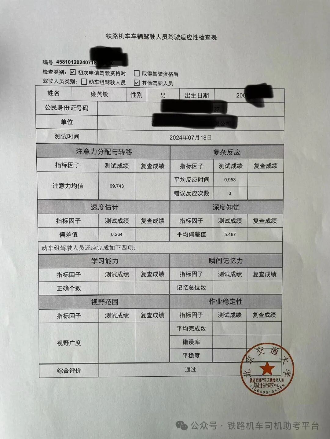 火车司机体检全攻略 + 自信微笑迎接每一次挑战+ "体检合格"是成为火车司机的第一道门槛! 作为一名火车司机学员,在正式参加考试前,必须通过严格的职业健康体检。这不仅关乎个人健康,更直接影响到未来的行车安全。 7月24日,我校统一组织下半年参加机车司机统考学员在国家铁路指定体检单位进行考试前统一体检工作,工作已顺利完成。 今天,我们就来详细解析**火车司机体检的全流程**,帮助大家提前准备,顺利过关! ![]() 🔍 体检项目一览 火车司机的体检标准严格参照《铁路机车车辆驾驶人员健康检查规范》,主要包括以下几大项: ![]() ![]() 勇敢迎接挑战 视力检查 ✅ **裸眼或矫正视力≥5.0(1.0)**(可戴眼镜,但矫正度数不能过高) ✅ **色觉正常**(不能有色盲、色弱,否则无法辨别信号灯) ✅**视力包含**(动视力、夜视力、深视力) 🚫 **红绿色盲直接淘汰!** ![]() 一起砥砺前行 ![]() 尿检 & 血检、听力测试 ✅ **无吸毒史、无传染病(如乙肝、梅毒等)** ✅ **血糖正常**(避免低血糖或糖尿病影响驾驶) ✅ **双耳听力正常**(需在安静环境下通过特定频率测试) 🚫 耳部疾病或严重听力障碍者不合格 ![]() 实验室 & 驾驶适应检查 ![]() 静心蓄力前行 ![]() 血压 & 心肺功能 ✅ **血压正常(<140/90mmHg)** ✅ **心电图正常**(无严重心律不齐、心肌缺血等问题) ✅ **肺功能良好**(无哮喘、严重肺病等影响驾驶的疾病) ![]() ![]() ![]() 驾驶适应性及神经系统检查 ✅ **反应速度测试**(确保紧急情况下能快速做出判断) ✅ **无癫痫、晕厥等病史** ✅ **检查项目包含** (注意力分配、复杂反应、学习能力、速度估计、深度知觉、视野范围、作业稳定、瞬间记忆力等项目) ![]() ![]() 青春无悔奋斗有成 ![]() ![]() 脚踏实地学习 ⚠️ 体检前注意事项 为了确保体检顺利通过,建议学员们提前做好以下准备: ✔ **保证充足睡眠**(体检前避免熬夜,否则可能影响血压和心率) ✔ **清淡饮食**(体检前一天避免高油高盐,以免影响血压和尿检结果) ✔ **避免剧烈运动**(体检前24小时不宜剧烈运动,防止心率异常) ✔ **带齐证件**(身份证、学员证、体检表等) ✔ **放松心态**(紧张可能导致血压升高,深呼吸调整状态) ## **🚑 体检不合格怎么办?** 如果不幸某项指标不达标,别慌!部分项目允许**复查或治疗后再检**,比如: - **血压偏高** → 调整作息、饮食后复测 - **轻微视力不达标** → 可配戴合适度数的眼镜矫正 - **尿检异常** → 排查是否因饮食或药物影响 但如果涉及**色盲、严重心脏病、癫痫等硬性不合格项**,则无法从事火车司机职业,需尽早考虑职业调整。 加油! ![]() ![]() ![]() 🎯 体检通过后,下一步是什么? 恭喜!拿到体检合格证明后,就可以安心准备**理论考试和实操考核**了。记住: - **理论考试**:熟记《铁路技术管理规程》《机车操纵规程》等 - **实操考核**:重点练习机车驾驶、故障应急处理等技能 ![]() 「 **📢 结语** 」 体检是火车司机职业生涯的第一道关卡,**健康的身体是安全行车的基础**。 希望每位学员都能顺利通过,早日踏上驾驶台,成为合格的(火车司机)! **🚄 祝大家体检顺利,考试成功!** |
